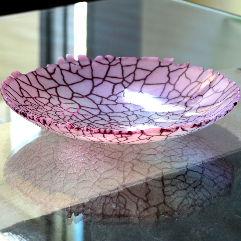 Kiln‑formed glass plates designed as sculptural, decorative works. These pieces emphasise form, surface and material behaviour, with each plate shaped through controlled heat and gravity to create refined, display‑focused compositions.